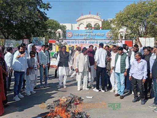 पीसीसी सदस्य सलीम सिगड़ी के संयोजन में आयोजित इस धरने को पूर्व राज्य मंत्री किशनलाल जैदिया, एआईसीसी को-ऑर्डिनेटर उर्मिला धायल, पूर्व प्रधान शेरसिंह नेहरा, और महिला कांग्रेस जिलाध्यक्ष शकुंतला यादव सहित दर्जनों नेताओं ने संबोधित किया।