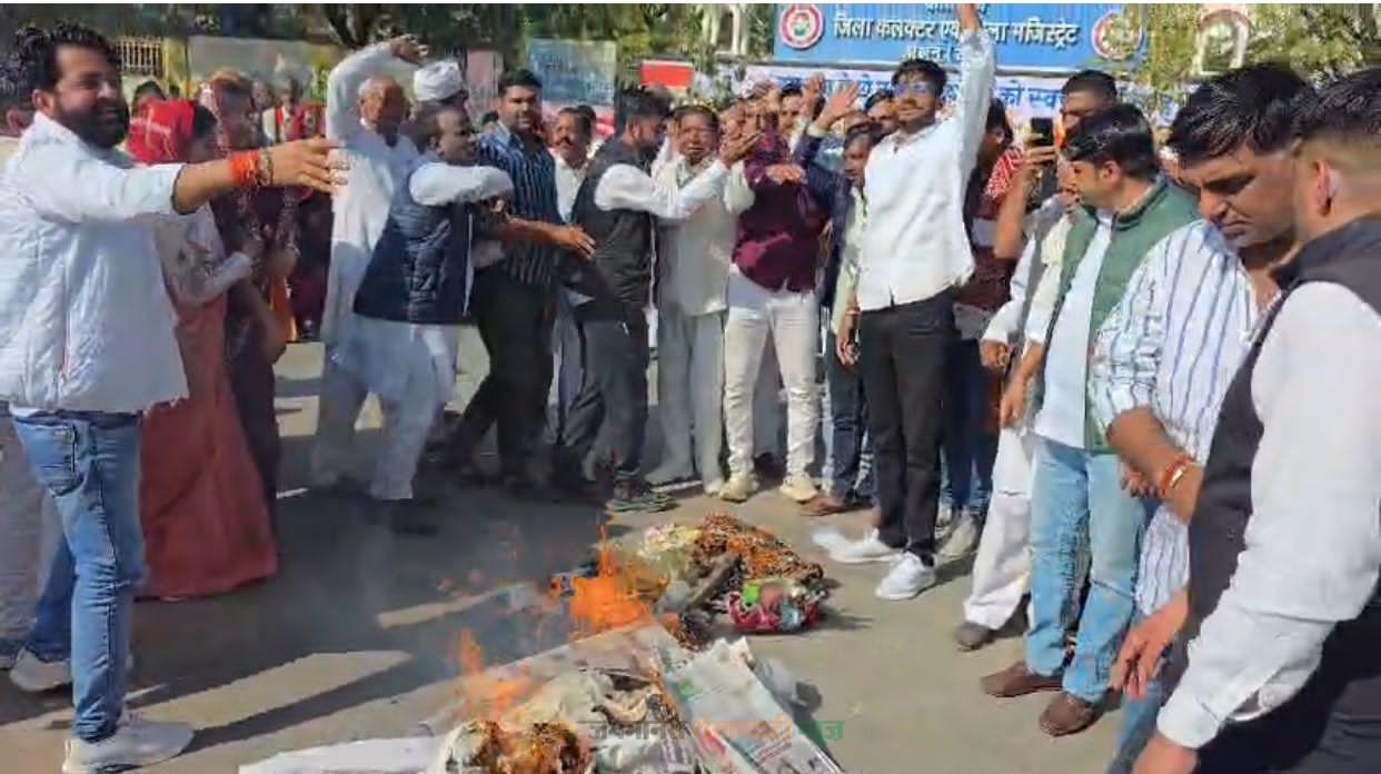 कांग्रेस ने मनरेगा नाम बदलने पर मोदी का पुतला जलाया:पूर्व जिलाध्यक्ष बोले-BJP कर रही तानाशाही, रोजगार गारंटी योजना को खत्म करने की साजिश