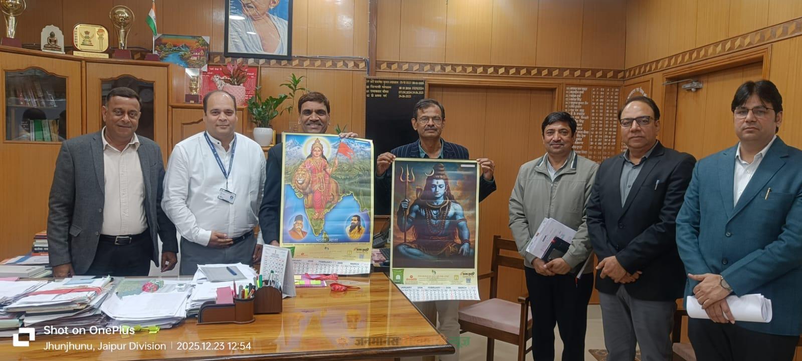 नवलगढ़ : सेवाज्योति आरआर मोरारका चैरिटेबल ट्रस्ट द्वारा प्रकाशित नव वर्ष 2026 के कैलेंडर का विमोचन जिला कलेक्टर डॉ. अरुण गर्ग द्वारा किया गया। इस अवसर पर पूर्व जिला कलेक्टर प्रदीप कुमार बोरडक, अतिरिक्त जिला कलेक्टर अजय कुमार आर्य, जिला परिषद के मुख्य कार्यकारी अधिकारी कैलाश चंद यादव एवं मुख्य चिकित्सा एवं स्वास्थ्य अधिकारी डॉ. छोटलाल गुर्जर सहित कई गणमान्य अधिकारी उपस्थित रहे।