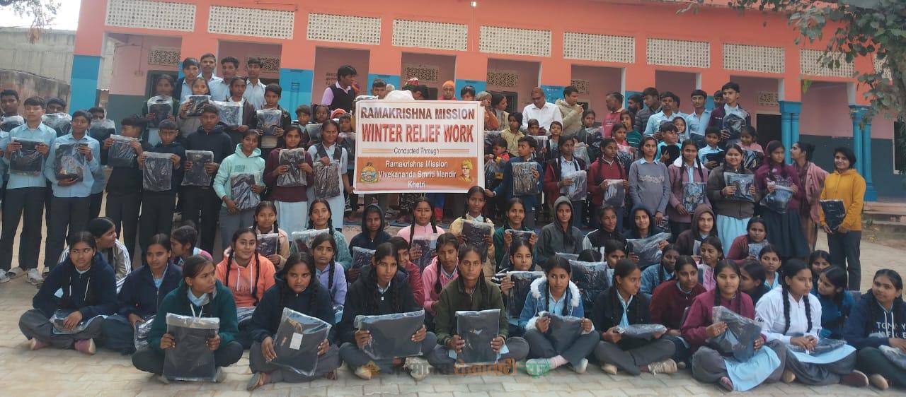 खेतड़ी : शीत ऋतु के आगमन पर रामकृष्ण मिशन विवेकानंद स्मृति मंदिर, खेतड़ी की ओर से विद्यार्थियों के लिए सराहनीय सेवा कार्य किया गया। मिशन द्वारा राजकीय सेठ प्रभुदयाल उच्च माध्यमिक विद्यालय, टीबा बसई के 123 विद्यार्थियों को निःशुल्क स्वेटर वितरित किए गए, ताकि वे ठंड के मौसम में सुरक्षित और स्वस्थ रह सकें।