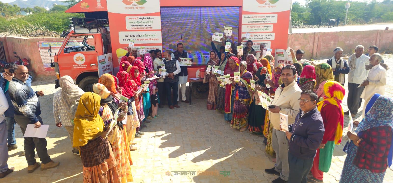 खेतड़ी के गोठड़ा में विकास रथ यात्रा का स्वागत:बीजेपी नेताओं ने सरकार के गिनाए काम, योजनाओं का लाभ लेने की अपील