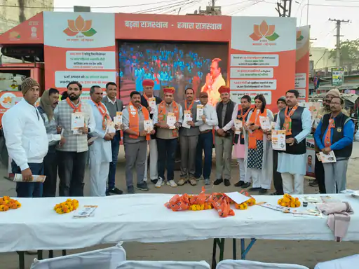 रानौली : राजस्थान सरकार के दो वर्ष पूरे होने के उपलक्ष्य में जनसंपर्क रथयात्रा का बुधवार शाम पलसाना के रामलीला मैदान में स्वागत किया गया। इस यात्रा का उद्देश्य राज्य सरकार की जनकल्याणकारी योजनाओं और उपलब्धियों को आमजन तक पहुंचाना है।पलसाना पहुंचने पर भाजपा पदाधिकारियों, जनप्रतिनिधियों, ग्रामीणों और कार्यकर्ताओं ने रथयात्रा का स्वागत किया। रथ पर लगी विशाल एलईडी स्क्रीन के माध्यम से भजनलाल सरकार के दो वर्षों के कार्यकाल में हुए विकास कार्यों, उपलब्धियों तथा केंद्र सरकार की जनहितकारी योजनाओं का प्रदर्शन किया गया।