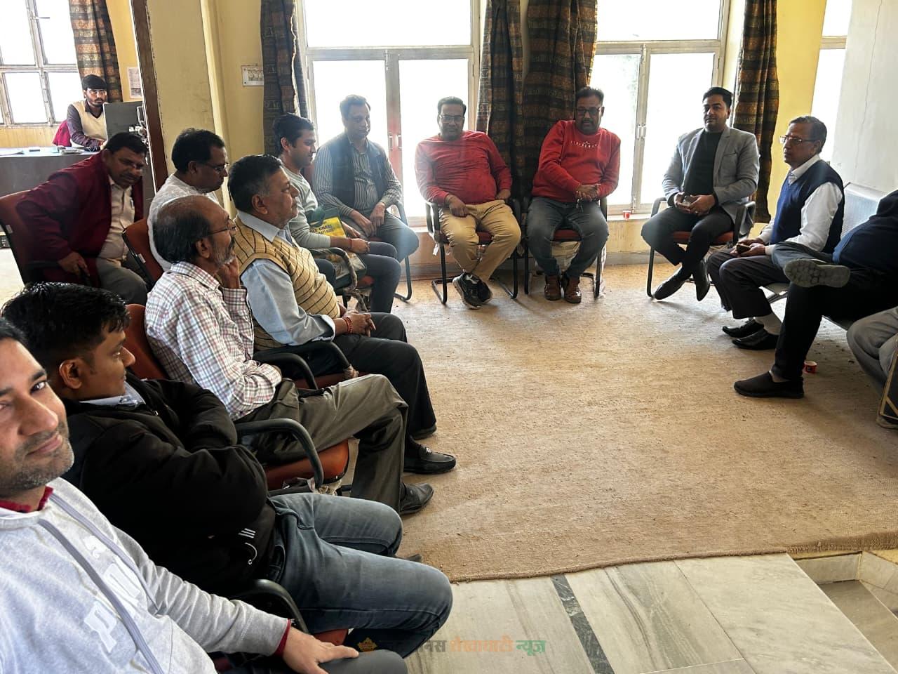 चूरू : जिला मुख्यालय पर कृषि उपज मण्डी समिति कार्यालय के सभा कक्ष में बुधवार को कृषि उपज मण्डी समिति सचिव पंकज शर्मा की अध्यक्षता में चूरू मण्डी व्यापार अध्यक्ष तथा अनुज्ञापत्रधारी व्यापारियों के साथ व्यापार स्थानान्तरण (ट्रेड शिफ्ट) करने के सम्बन्ध में बैठक आयोजित की गई। मंडी सचिव पंकज शर्मा ने बताया कि बैठक में व्यापारियों की पूर्व मांग के अनुसार आवंटित दुकानों के पीछे गोदामों का आवंटन कर उनको कब्जा पत्र जारी कर दुकानों का कब्जा व्यापरियों को सुपुर्द कर दिया गया है और व्यापारियों को मण्डी प्रांगण में व्यापार स्थानान्तरण हेतु निर्देशित किया गया है।