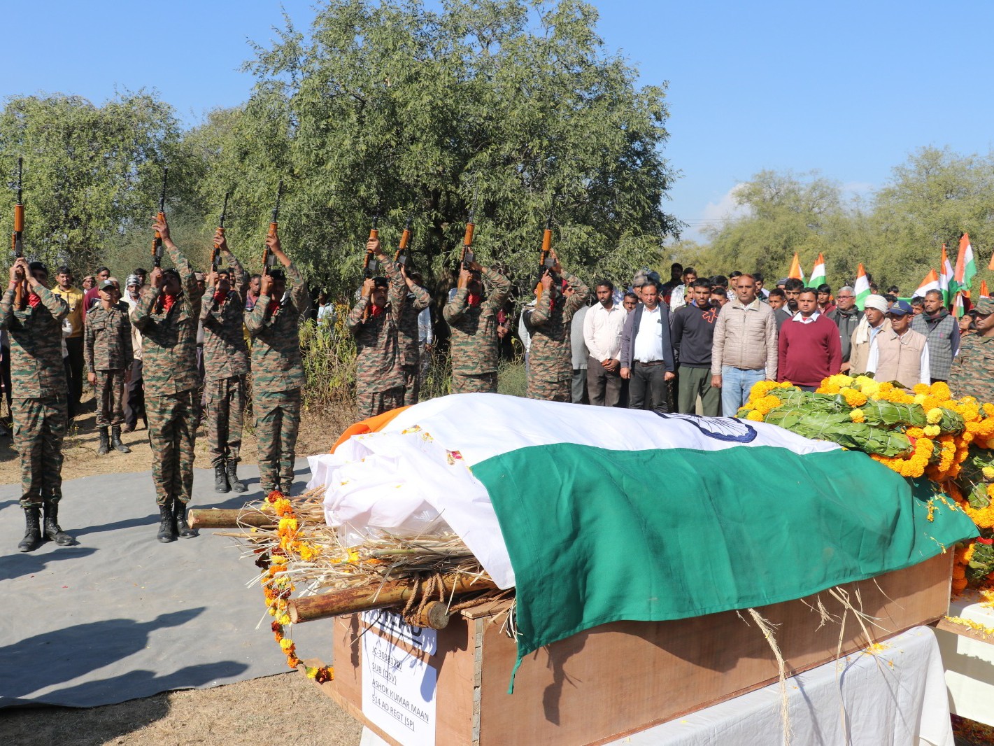 जिला सैनिक कल्याण अधिकारी चिड़ावा, कर्नल सुरेश कुमार जांगिड़ ने बताया कि पोस्टमार्टम के बाद पार्थिव शरीर गांव भिर्र लाया गया। यहां सैन्य टुकड़ी द्वारा उन्हें गार्ड ऑफ ऑनर दिया गया। तिरंगे में लिपटे पार्थिव शरीर को अंतिम विदाई देते समय सभी की आंखें नम थीं। उनके बड़े बेटे मोहित मान (22 वर्ष) ने उन्हें मुखाग्नि दी।