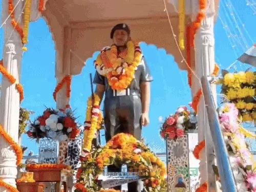 सीकर के आकवा में शहीद रेखाराम कृष्णिया की मूर्ति अनावरण:पूर्व सांसद सुमेधानंद बोले- शहादत शेखावाटी की पहचान, 1971 के युद्ध में शहीद हुए थे