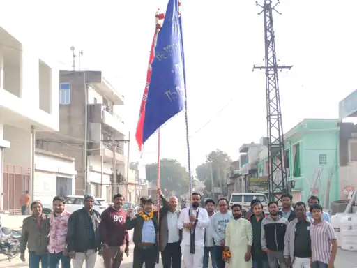 सिंघाना से चिड़ावा के लिए पदयात्रा रवाना:परमहंस बावलियां बाबा को निशान चढ़ाएंगे श्रद्धालु