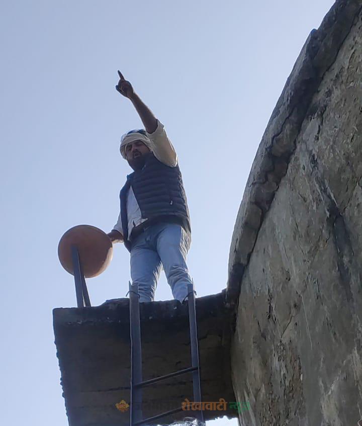 खेतड़ी के सेफरागुवार में पेयजल संकट पर शंकर सिंह सेफरागुवार पानी की टंकी पर चढ़े, चार घंटे बाद प्रशासन के आश्वासन पर उतरे