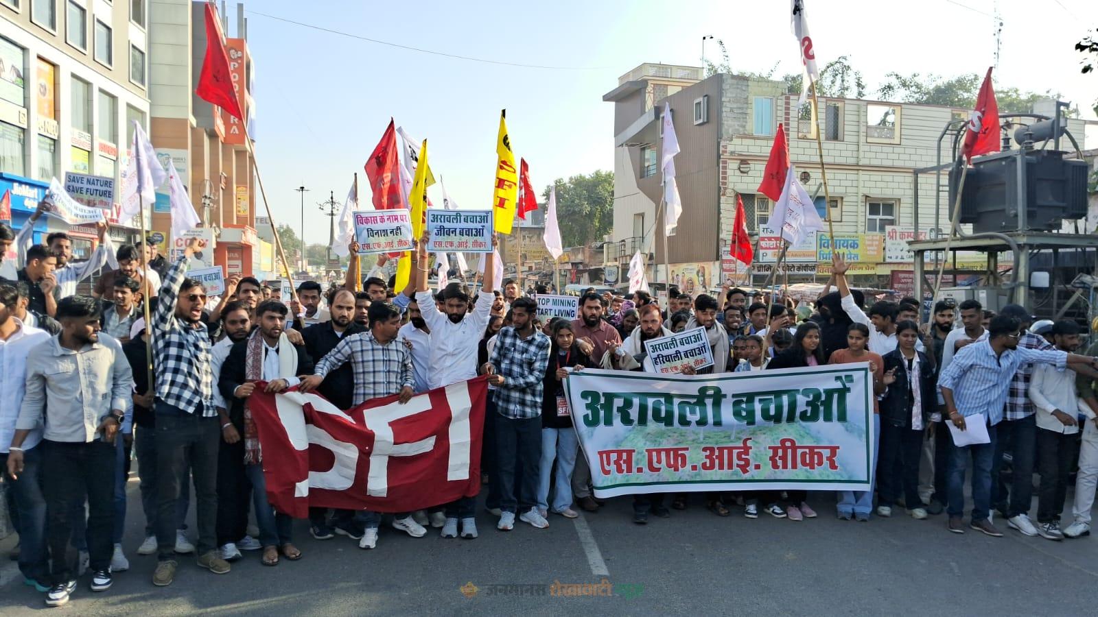 अरावली बचाने के लिए सड़क पर उतरे छात्र:SFI ने हर्ष पहाड़ी पर मनाया 56वां स्थापना दिवस, 15 किलोमीटर तक निकाला पैदल मार्च