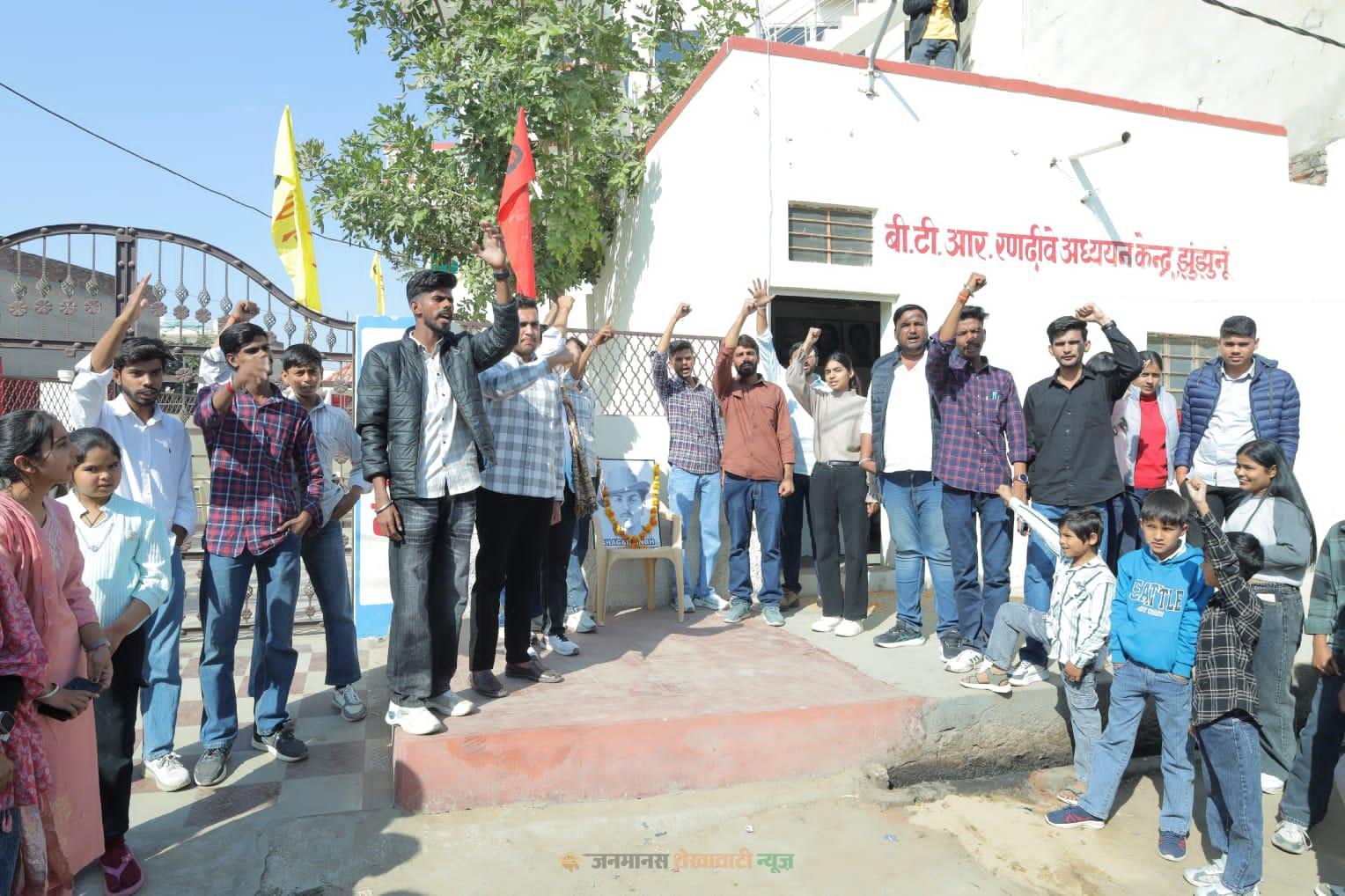 समारोह को किसान नेता फूलचंद बर्बर, एसएफआई जिला उपाध्यक्ष विकाश जैदिया, छात्रसंघ अध्यक्ष कपिल चोपड़ा, पूर्व प्रदेश कमेटी सदस्य चुकी नायक, निकिता शर्मा, पूजा नायक, किसान नेता जिला अध्यक्ष राजेश बिजारनिया, साबिर भाटी, महिपाल पुनिया, सुमेर बुडानिया, राजेश आलडिया सहित अन्य वक्ताओं ने भी संबोधित किया।