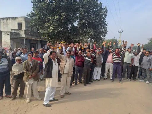 खुड़िया पंचायत को पिलानी में शामिल करने का विरोध:ग्रामीणों ने भाजपा नेताओं के खिलाफ किया प्रदर्शन, चुनाव बहिष्कार की चेतावनी दी