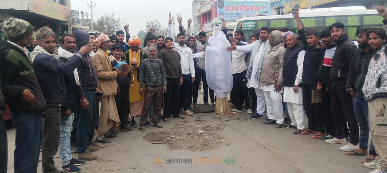 जिप वार्डों की पुनर्गठन सूची को लेकर ग्रामीणों ने मुख्यमंत्री की शव यात्रा व पुतला जलाकर किया विरोध प्रदर्शन, वार्डों के फेरबद को लेकर पूर्व विधायक शुभकरण चौधरी पर लगे आरोप