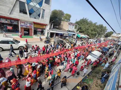 मां शाकंभरी प्राकट्य महोत्सव पर 18 किमी लंबी पदयात्रा:श्रद्धालु 2 किलोमीटर लंबी चूंदड़ लेकर निकले, लोगों ने की फूलों की बरसात, देशभर से आए लोग