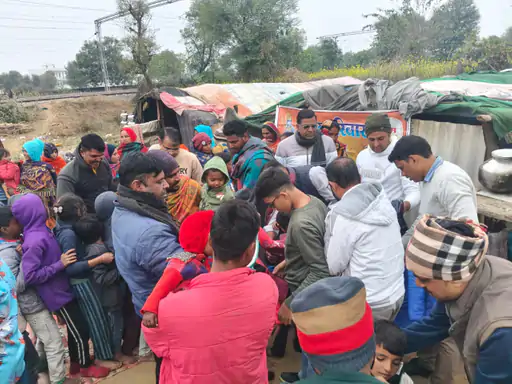 श्री राम परिवार ने कच्ची बस्ती में नववर्ष मनाया:भोज का आयोजन किया, बच्चों को गर्म कोट बांटे