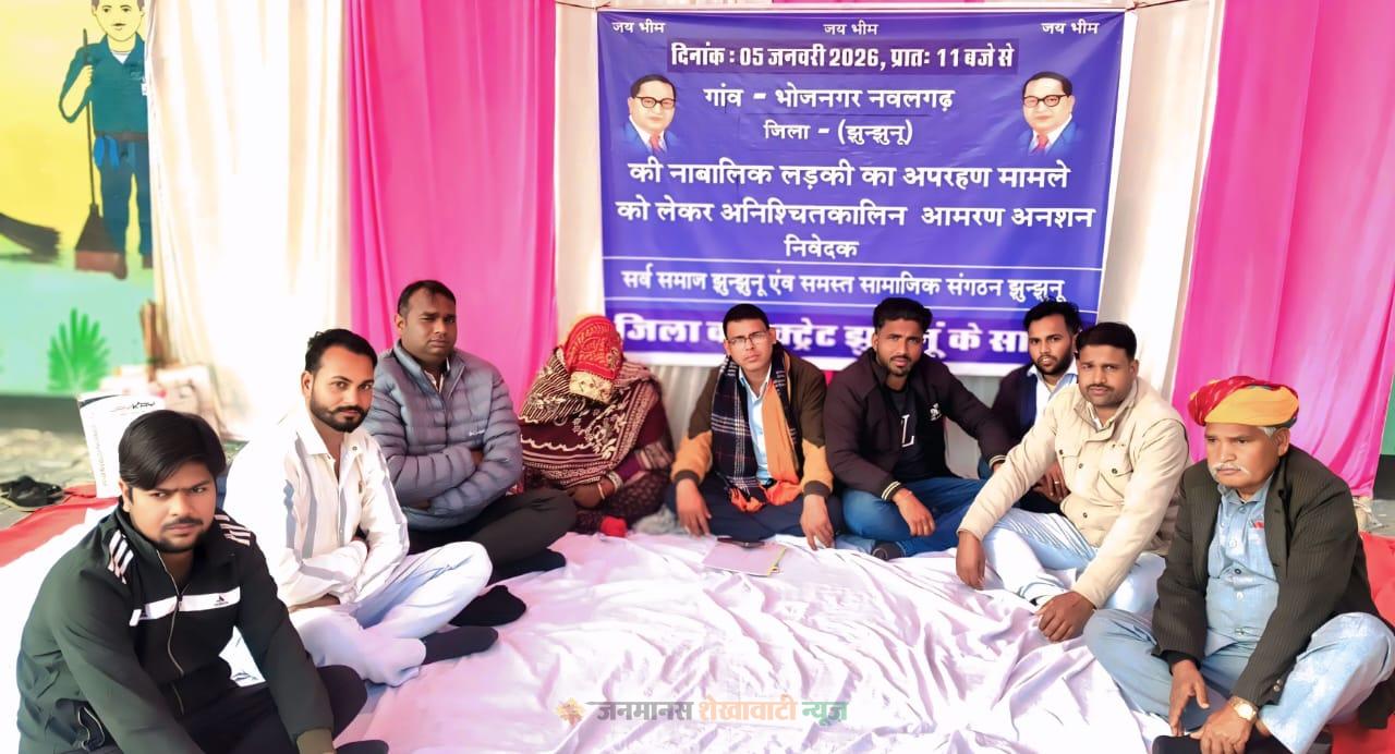 दरअसल, मामला झुंझुनूं जिले के नवलगढ़ तहसील के भोज नगर का है। अनशन पर बैठी मां ने जिला कलेक्टर को सौंपे गए पत्र में बताया कि उनकी नाबालिग बेटी का अपहरण 19 सितंबर 2025 को हुआ था। इस संबंध में पुलिस थाना गोठड़ा में नामजद मुकदमा दर्ज कराया गया था। लेकिन पुलिस अभी तक उनकी बेटी का पता नहीं लगा पाई है।