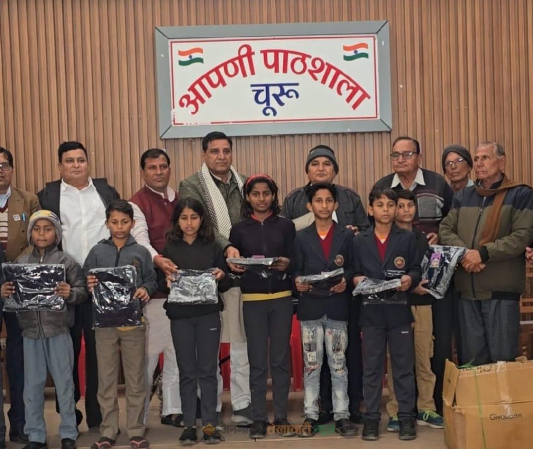 चूरू : जिला मुख्यालय पर संचालित आपणी पाठशाला में चूरू विधायक हरलाल सहारण तथा दईया होजरी, नई दिल्ली के प्रो ताराचंद दईया ने परिवारजनों के साथ पाठशाला में अध्ययनरत विद्यार्थियों को गर्म कपड़े वितरित किए। इस मौके पर चूरू विधायक हरलाल सहारण ने कहा कि इस प्रकार की नेक सोच और सेवा भावना से अभावग्रस्त बच्चों को शिक्षा में सहयोग मिलता है तथा सर्दी के मौसम में उन्हें राहत प्राप्त होती है। उन्होंने समाज के अन्य लोगों से भी ऐसे कार्यों में आगे आने का आह्वान किया।