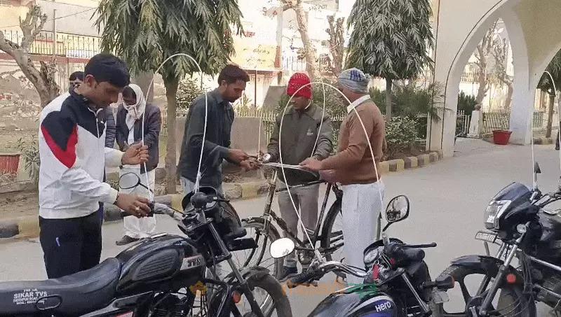 चाइनीज मांझे के खतरे से निपटने आगे आए युवा:सीकर में सार्वजनिक जगहों पर बाइक-साइकिल पर बांधे सुरक्षा कवच