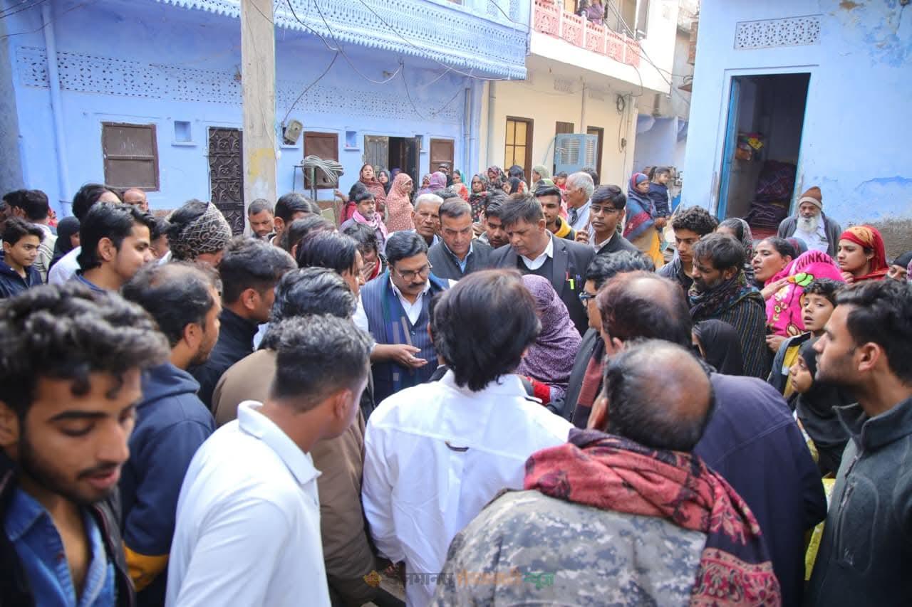 चौमू : चौमू प्रकरण को लेकर राजस्थान प्रदेश कांग्रेस कमेटी (पीसीसी) द्वारा गठित उच्चस्तरीय जांच समिति गुरुवार को चौमू पहुंची। समिति ने घटना स्थल कलिंदर मस्जिद पहुंचकर मौका-मुआयना किया और पीड़ित परिवारों से सीधे संवाद कर उनकी पीड़ा को सुना।
