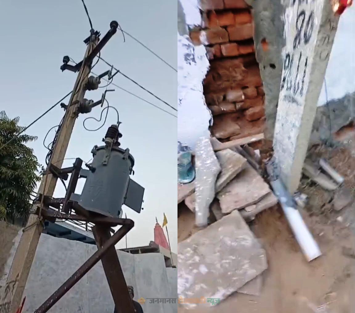 बनगोठड़ी खुर्द में ट्रैक्टर–ट्रॉली की टक्कर से बिजली का पोल अधरझूल, हादसे की आशंका
