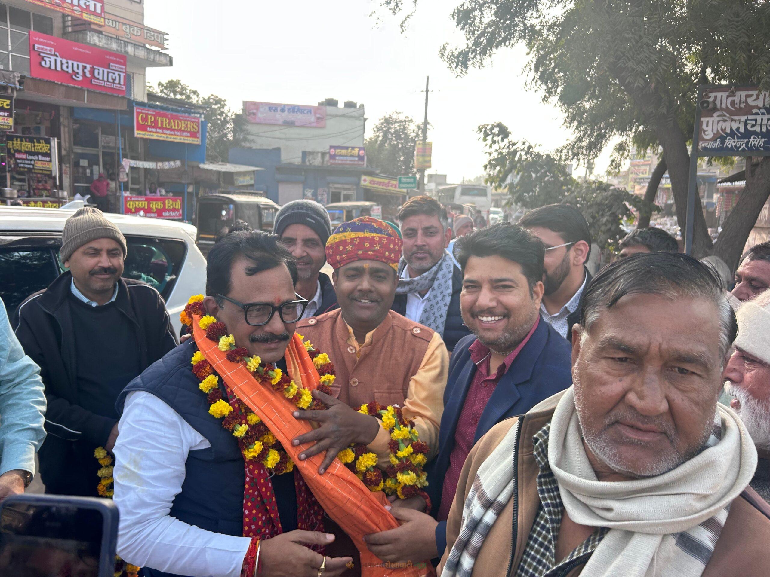 सिंघाना बायपास सर्किल पर भाजपा प्रदेश उपाध्यक्ष मुकेश दाधीच का भव्य स्वागत