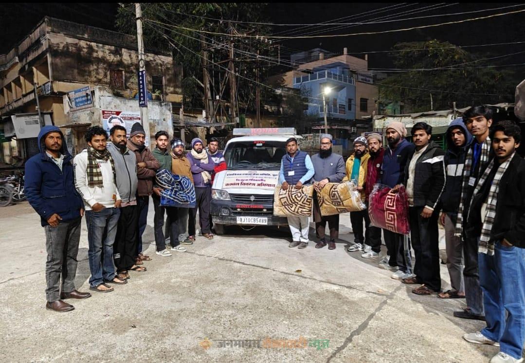 रात्रि कालीन कंबल वितरण अभियान रतनगढ़ में 23 वे दिन रहा