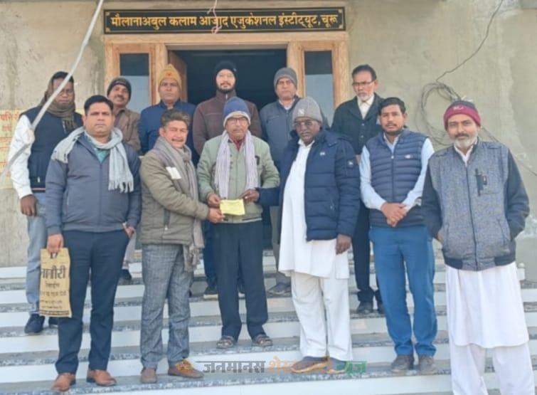 चूरू : जिला मुख्यालय पर मौलाना अब्दुल कलाम आजाद वेलफेयर सोसाइटी की मीटिंग संपन्न हुई मीटिंग में उपस्थित सदस्यों ने निर्माणाधीन बिल्डिंग के कार्यों का निरीक्षण किया एवं भविष्य में बिल्डिंग का मल्टी-प्रपज उपयोग लेने पर विचार-विमर्श किया गया, सभी सदस्यों ने अपने-अपने विचार रखें जिसमें बिल्डिंग के ऊपर छत पर सोलर प्लांट लगाने, 5 G टावर लगाने एवं शहीद स्मारक बनाने पर विचार किया गया। साथ ही जो भी बिल्डिंग का कार्य अभी अधूरा है उसके लिए भामाशाहों से संपर्क कर कार्य को जल्द से जल्द पूर्ण करवाने की चर्चा की गई मीटिंग में उपस्थित सदस्य में मुस्ताक लुहार और युनस अली लुहार ने मुस्लिम लुहार समाज की तरफ से सहयोग की नियत से बिल्डिंग निर्माण के लिए बीस हजार छ सौ रूपये का नगद सहयोग किया ।