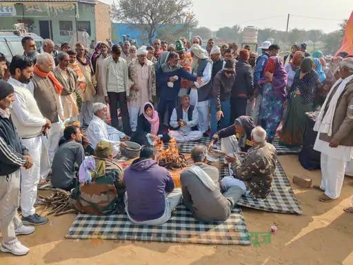 सादुलपुर के रतनपुरा में पानी के लिए धरना:ग्रामीणों ने किया सदबुद्धि यज्ञ, आंदोलन तेज करने की चेतावनी दी