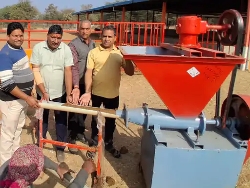 रानौली : पलसाना कस्बे की जनता गोशाला में अब गोबर का उपयोग खाद के अलावा ईंधन के रूप में भी किया जाएगा। इसके लिए गोबर से लकड़ी बनाने की प्रक्रिया शुरू की गई है। एक भामाशाह परिवार ने गोशाला को गोकास्ट मशीन भेंट की है। गोशाला संचालकों ने बताया कि पलसाना निवासी स्वर्गीय मालीराम अग्रवाल और उनकी धर्मपत्नी स्वर्गीय सीता देवी की स्मृति में उनके पुत्रों बजरंग लाल, रामगोपाल, संजय कुमार, महेंद्र कुमार एवं पवन कुमार अग्रवाल ने यह मशीन दान की है।