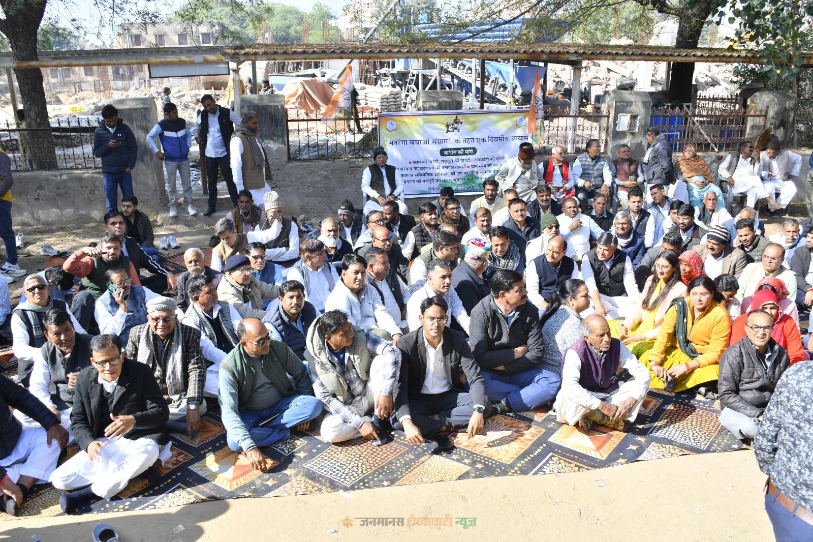 चूरू : राजस्थान प्रदेश कांग्रेस कमेटी के निर्देशानुसार मनरेगा बचाओ संग्राम के तहत चूरू जिला कांग्रेस कमेटी की ओर से जिला मुख्यालय पर एक दिवसीय उपवास कर विरोध प्रदर्शन किया गया। यह उपवास गांधी स्मारक, पुरानी कलेक्ट्रेट चूरू के सामने जिला कांग्रेस अध्यक्ष एवं सुजानगढ़ विधायक मनोज मेघवाल के नेतृत्व में आयोजित हुआ।