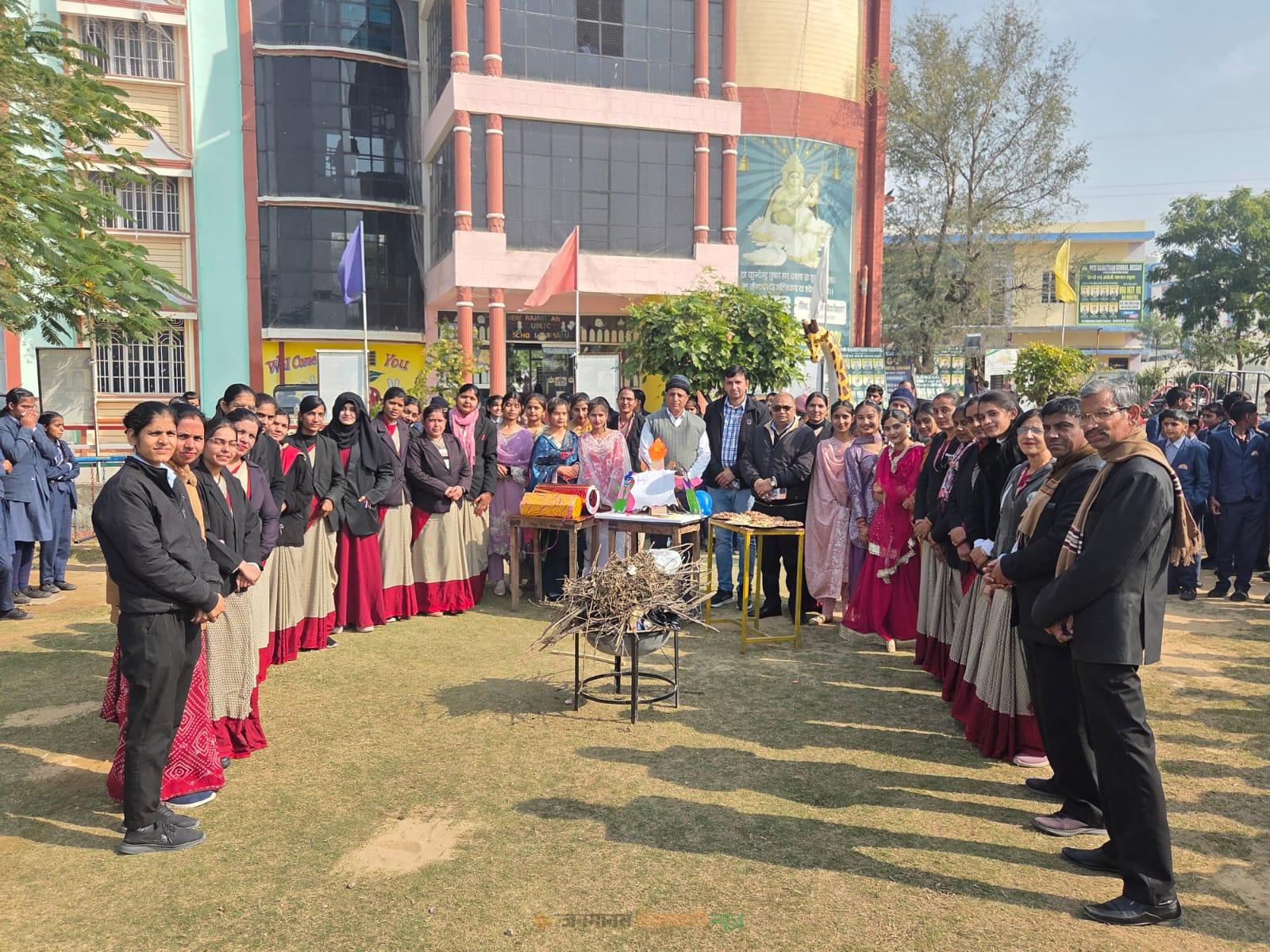 बिसाऊ : न्यू राजस्थान पब्लिक स्कूल बिसाऊ में पारंपरिक त्योहार लोहड़ी बड़े उत्साह और उल्लास के साथ मनाया गया। इस अवसर पर विद्यार्थियों व शिक्षकों ने मिलकर भारतीय संस्कृति और परंपराओं का जीवंत प्रदर्शन किया। कार्यक्रम की शुरुआत पवित्र अलाव प्रज्ज्वलन से हुई। विद्यार्थियों ने अलाव के चारों ओर घूमते हुए पारंपरिक लोकगीत गाए और भांगड़ा व गिद्दा नृत्य प्रस्तुत कर सभी का मन मोह लिया। छात्र-छात्राएं पारंपरिक पंजाबी वेशभूषा में सजे हुए थे, जिससे पूरा परिसर उत्सवमय वातावरण से भर गया। सस्था निदेशक डॉ प्रताप सिंह सिहाग ने अपने संबोधन में लोहड़ी के महत्व पर प्रकाश डालते हुए कहा कि यह त्योहार नई फसल और प्रकृति के प्रति आभार व्यक्त करने का प्रतीक है। ऐसे आयोजन विद्यार्थियों में सांस्कृतिक मूल्यों और सामाजिक समरसता को बढ़ावा देते हैं। विद्यालय प्रधानाचार्य रविश भरद्वाज ने बतया की विद्यार्थियों को भारतीय लोक परंपराओं से जोड़ने के साथ-साथ आपसी भाईचारे और उल्लास का संदेश दिया। कार्यक्रम के अंत में विद्यार्थियों को रेवड़ी, मूंगफली, पॉपकॉर्न और गुड़ वितरित किया गया। सभी ने मिलकर एक-दूसरे को लोहड़ी की शुभकामनाएं दीं और इस पारंपरिक पर्व को यादगार बनाया।