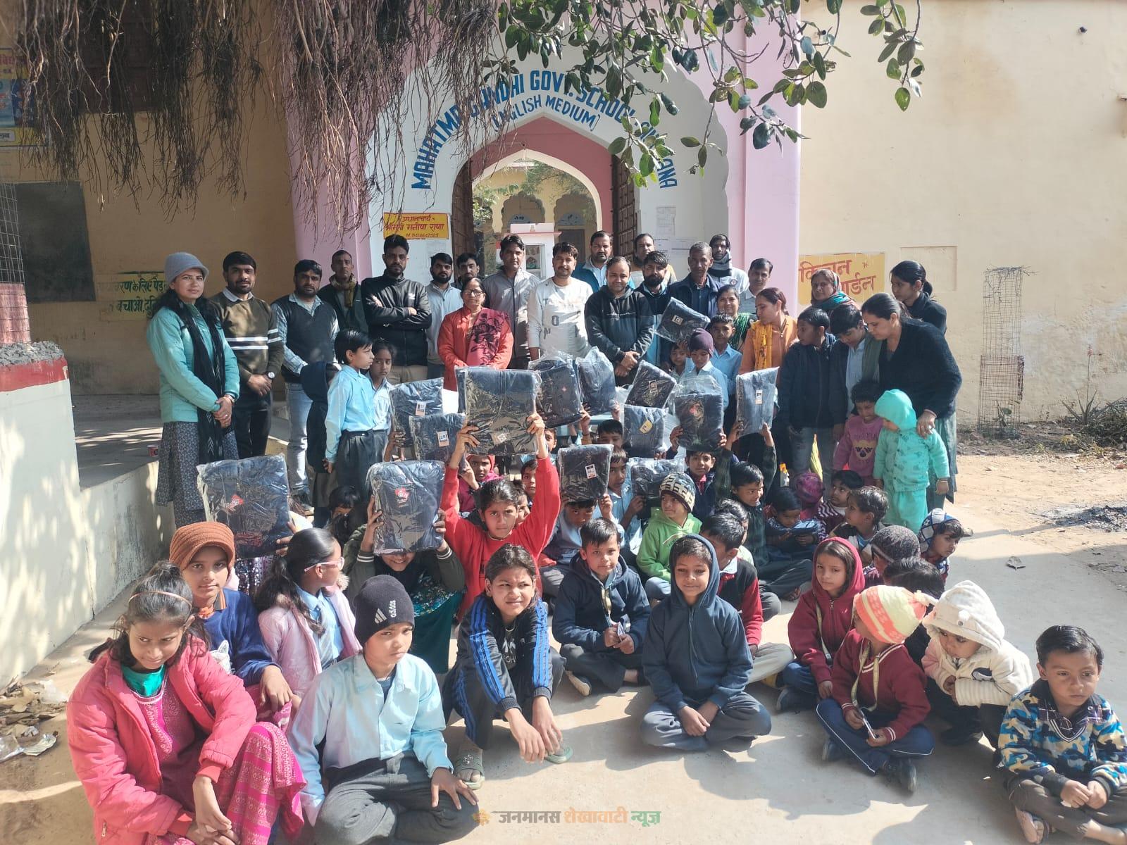 सिंघाना : महात्मा गांधी राजकीय विद्यालय, सिंघाना में मंगलवार को स्वर्गीय पुरुषोत्तम शर्मा की स्मृति में सर्दी से राहत पहुंचाने का सराहनीय आयोजन किया गया। अध्यापिका सुषमा शर्मा द्वारा बाल वाटिका से कक्षा पांच तक अध्ययनरत सभी विद्यार्थियों एवं विद्यालय के सहायक कर्मचारियों को स्वेटरों का वितरण किया गया।