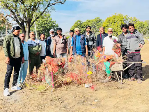 लक्ष्मणगढ़ में 15 किलो प्लास्टिक मांझा नष्ट:पूर्व पार्षद की टीम ने कब्रिस्तान-श्मशान घाट से किया एकत्र