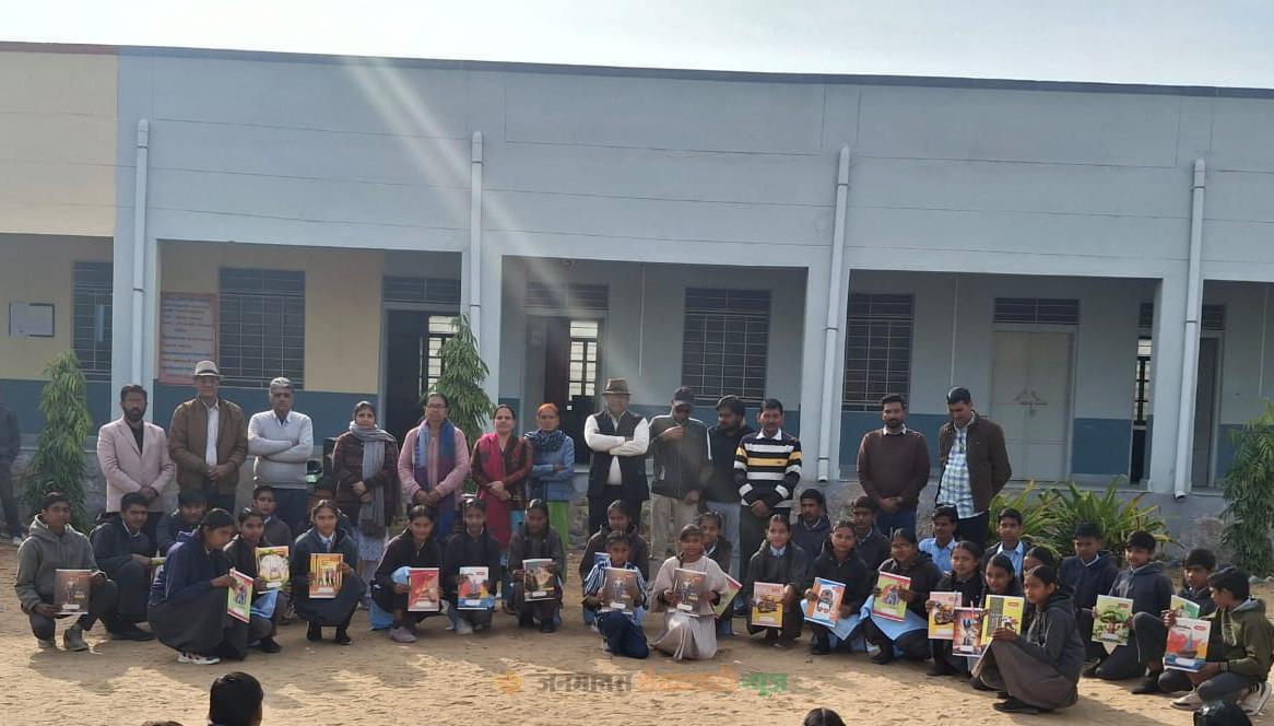 राउमावि महनसर में वरिष्ठ अध्यापक अशफाक अली ने विद्यार्थियों को शिक्षण सामग्री वितरित की