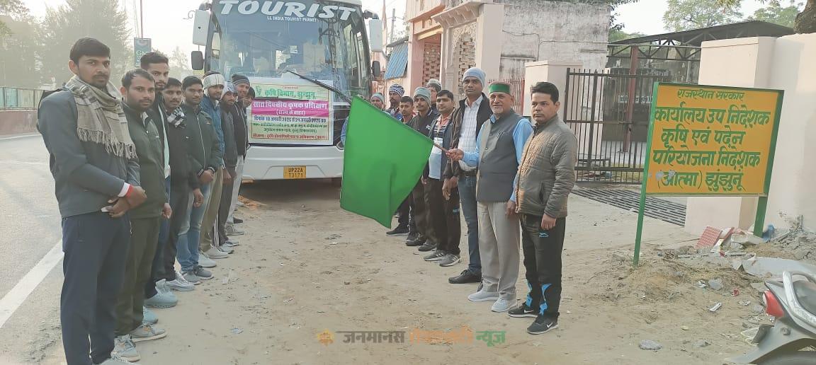 झुंझुनूं : झुंझुनूं के किसानों को आधुनिक तकनीक से रूबरू करवाने और उनकी आय में वृद्धि करने के उद्देश्य से आत्मा योजना के अंतर्गत एक महत्वपूर्ण पहल की गई है। रविवार को झुंझुनूं के 30 प्रगतिशील किसानों का एक दल सात दिवसीय अंतरराज्यीय प्रशिक्षण के लिए हिमाचल प्रदेश के लिए रवाना हुआ। उपनिदेशक (कृषि विस्तार) एवं पदेन परियोजना निदेशक (आत्मा) शीशराम जाखड़ ने कलेक्ट्रेट परिसर से दल को हरी झंडी दिखाकर रवाना किया।