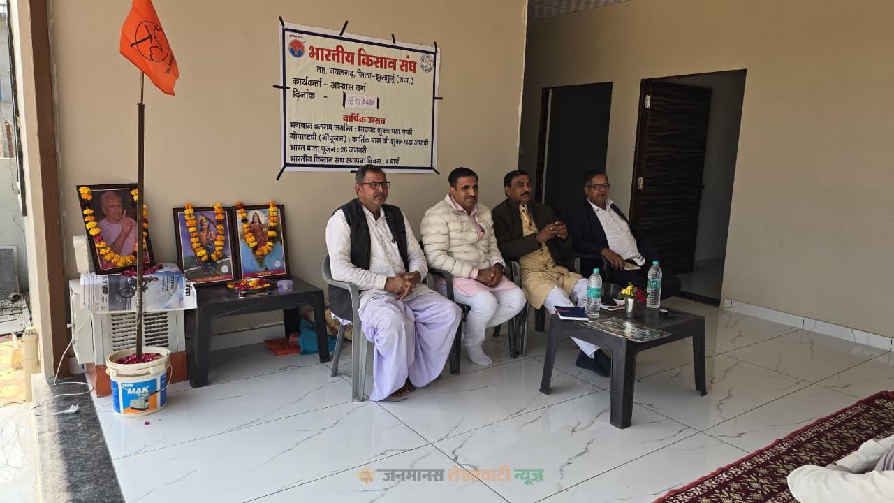 नवलगढ़ : भारतीय किसान संघ नवलगढ़ तहसील का कार्यकर्ता प्रशिक्षण वर्ग तहसील अध्यक्ष अमरचंद ढाका की अध्यक्षता में संपन्न हुआ। अभ्यास वर्ग में भारतीय किसान संघ के अखिल भारतीय उपाध्यक्ष रामभरोसे बसोतिया का मार्गदर्शन प्राप्त हुआ, जबकि संभाग अध्यक्ष किशोर सिंह निठारवाल का आशीर्वाद भी मिला।