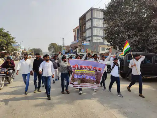 गिरावड़ी के ग्रामीणों ने 60 किमी पैदल यात्रा निकाली:पावर ग्रिड लाइन का मार्ग बदलने, पेड़-जीव बचाने की मांग की
