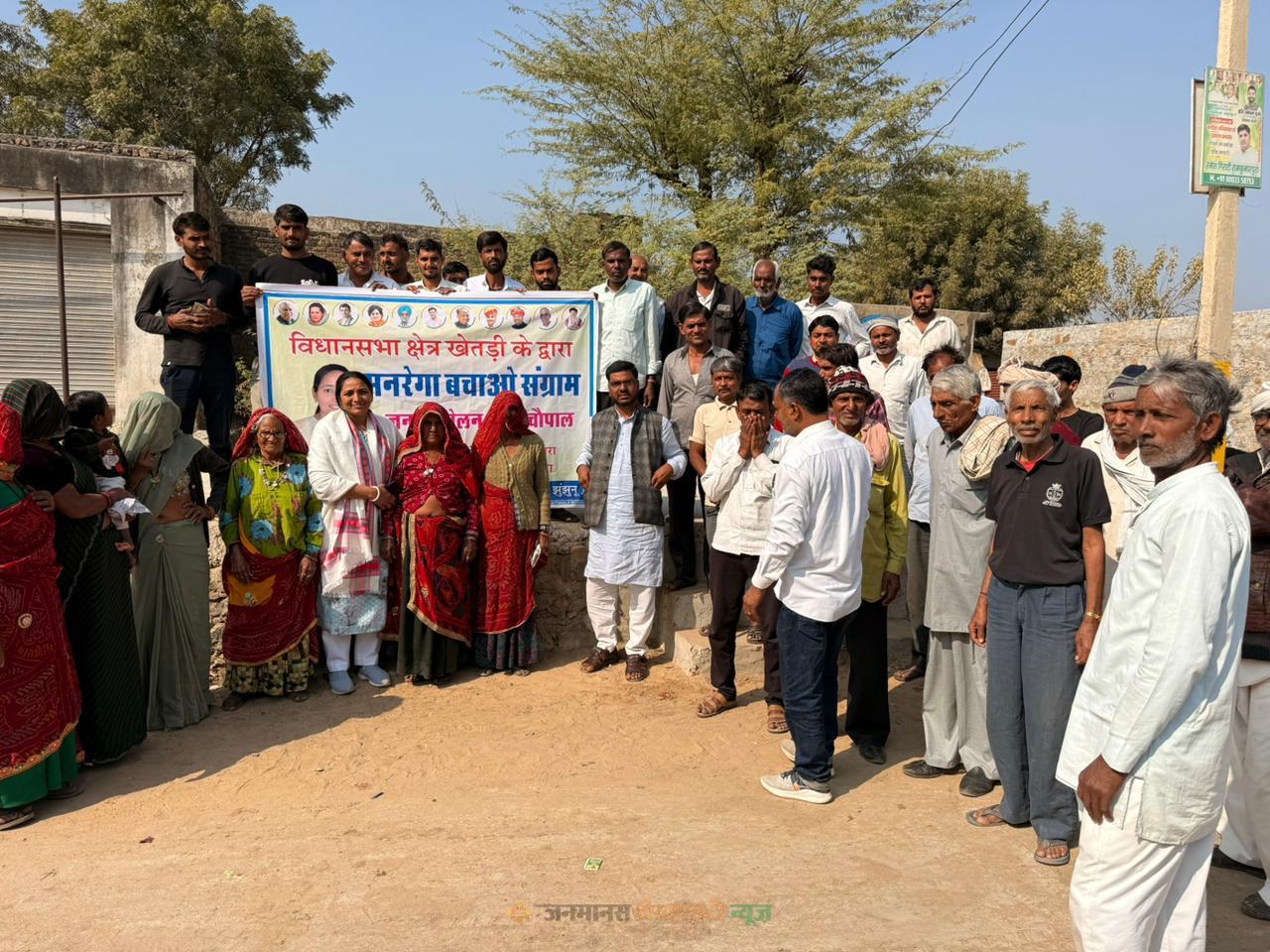 खेतड़ी : मनरेगा को समाप्त करने के केंद्र सरकार के फैसले को लेकर ग्रामीण क्षेत्रों में रोष देखने को मिल रहा है। इसी के विरोध में आज खेतड़ी विधानसभा क्षेत्र की ग्राम पंचायत रामकुमारपुरा और संजय नगर के ग्रामीणों ने प्रधान मनीषा गुर्जर, खेतड़ी के नेतृत्व में विरोध प्रदर्शन किया।