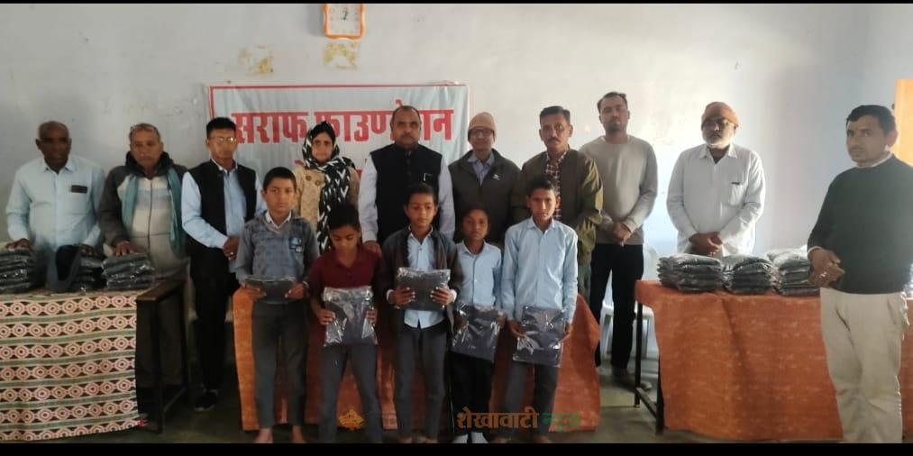 दाधिच ने अपने उद्बोधन में सराफ फाउंडेशन द्वारा जनहित में किये जा रहे निरन्तर सेवा कार्यों की भूरी-भूरी प्रशंसा करते हुए साधुवाद दिया। जगदीश शर्मा ने फाउंडेशन के बहुमुखी कार्यों की जानकारी दी। विधालय की प्रधानाचार्या संतोष पारीक ने फाउंडेशन का आभार एवं धन्यवाद ज्ञापित किया।इस अवसर पर एस एम सी अध्यक्ष प्रभुदयाल शास्त्री, समाज सेवक किशोर सिंह, पंच कुंभाराम सैनी, सुमेर सिंह, रामचंद्र ढाका व सांवरमल शर्मा सहित ग्रामीण उपस्थित थे। कार्यक्रम का संचालन सुभाष शर्मा ने किया।