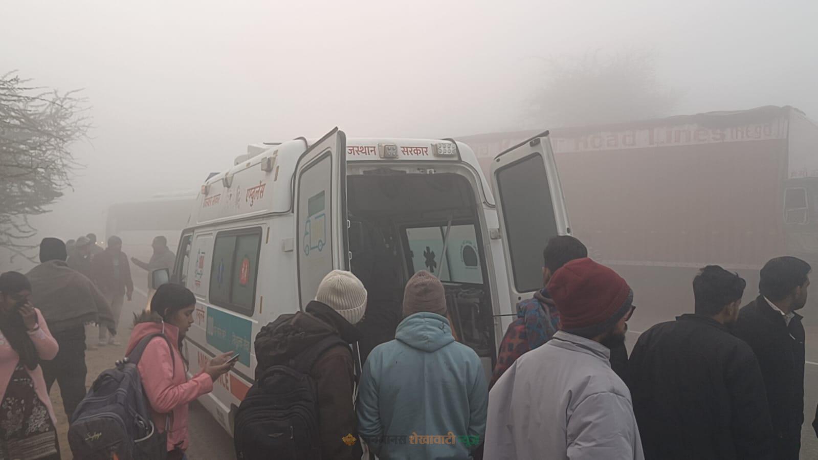 सादुलपुर में कोहरे के चलते हादसा:मरीज लेकर जा रही एंबुलेंस ट्रक से भिड़ी, मरीज की मौत; तीन घायल
