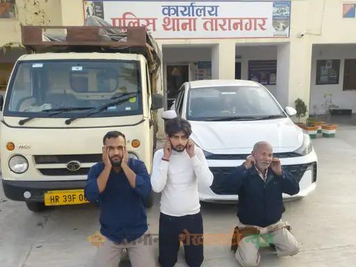 तारानगर पुलिस ने भैंस चोरी गिरोह के तीन आरोपी पकड़े:चोरी की भैंस, टैम्पो और रैकी में इस्तेमाल कार जब्त