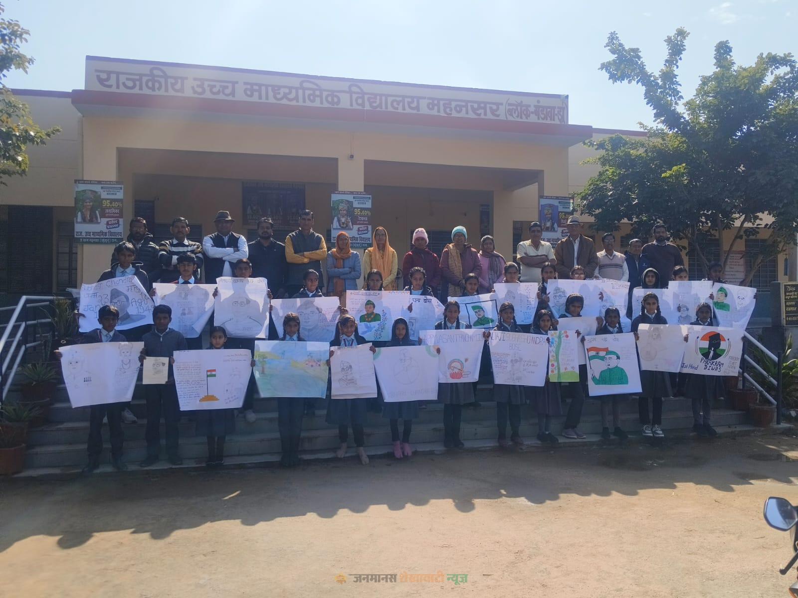 महनसर : राजकीय उच्च माध्यमिक विद्यालय महनसर में बसंत पंचमी उत्सव एवं नेताजी सुभाष चंद्र बोस की जयंती प्रधानाचार्य जयराम जांगिड़ की अध्यक्षता में हर्षोल्लास के साथ मनाई गई। कार्यक्रम का शुभारंभ दीप प्रज्ज्वलन एवं सरस्वती वंदना के साथ हुआ। राष्ट्रीय गीत वंदे मातरम् की 150वीं जयंती के अवसर पर सामूहिक गायन किया गया तथा शिक्षकों, विद्यार्थियों एवं अभिभावकों ने राष्ट्रीय मतदाता दिवस की शपथ ली। इस अवसर पर आयोजित पोस्टर प्रतियोगिता में विद्यार्थियों ने उत्साहपूर्वक भाग लिया। प्राथमिक वर्ग में वैष्णवी, नसीम एवं आईना ने क्रमशः प्रथम, द्वितीय एवं तृतीय स्थान प्राप्त किया। उच्च प्राथमिक वर्ग में अंकिता ने प्रथम तथा सोनम ने द्वितीय स्थान प्राप्त किया। माध्यमिक वर्ग में अफ्शां प्रथम रही, जबकि उच्च माध्यमिक वर्ग में साइना, रिया एवं शाहिद ने प्रथम, भूमिका, शाहिदा एवं सोनम ने द्वितीय तथा सुमैया, अर्चना एवं आशिष ने तृतीय स्थान प्राप्त किया।