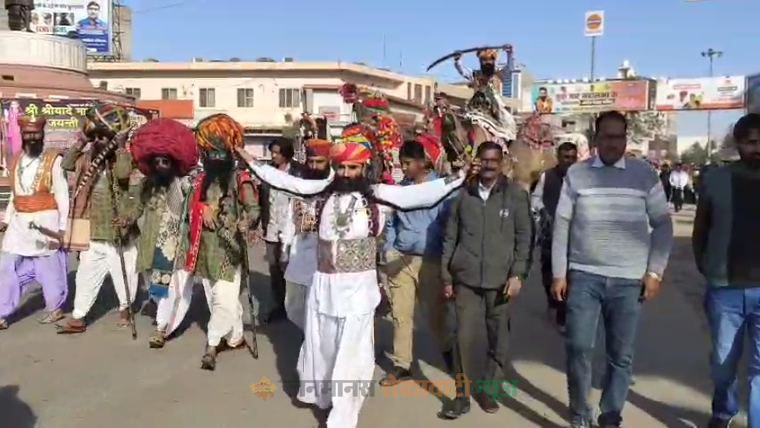 सीकर में शेखावाटी उत्सव, बोतल से निकला जिन्न:7 फीट लंबी मूंछ, 380 मीटर लंबी पगड़ी पहनकर पहुंचे कलाकार, ऊंट-घोड़ों के साथ प्रदर्शन सीकर
