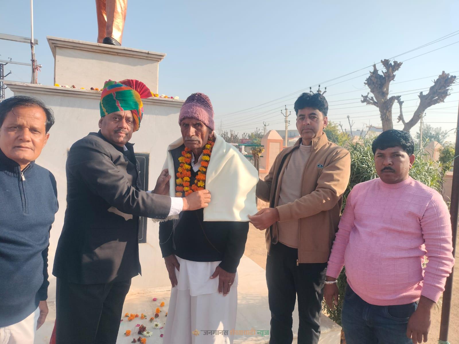 बिसाऊ : 77वें दिवस के पावन अवसर पर बिसाऊ तहसील कार्यालय में धुमधाम के साथ तहसिलदार शेर सिंह राठोड़ व कस्बे के गणमान्य नागरिकों के द्वारा ध्वजारोहण कर गणतंत्र दिवस मनाया गया। इस अवसर पर मिठाई वितरण किया गया। ध्वजारोहण के बाद बिसाऊ कस्बे के 1999 में भारत पाकिस्तान युद्ध में शहीद रामस्वरूप सिंह को श्रद्धांजलि अर्पित करने के लिए शहीद स्मारक पहुंचकर पुष्प अर्पित कर श्रद्धांजलि दी। इस अवसर पर तहसीलदार शेर सिंह राठोड़ व पुर्व मनोनीत पार्षद मकसूद खान तथा एडवोकेट उमाशंकर सेवदा, दलिप जांगिड़ पटवारी बिसाऊ, सुनिल कुमार किलानियां सिनियर असिस्टेंट, अंकित पटवारी धिरासर, राकेश मिणा पटवारी चुडैला व राजेश जिंदल सभी ने शहीद रामस्वरूप सिंह के पिता नागरमल मुंदडिया को शोल उढाकर सम्मानित किया।
