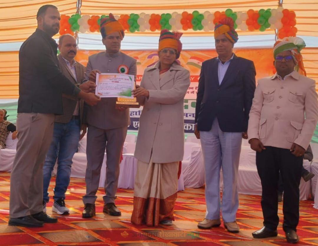 बिसाऊ : 77वें गणतंत्रता दिवस के अवसर पर शहीद मुश्ताक खां के पौत्र इमरान खान वल्द मोहम्मद अयूब खां (पूर्व कॉपरेटिव अध्यक्ष) कनिष्ठ सहायक तहसील कार्यालय बिसाऊ को राजस्व शाखा में उत्कृष्ट कार्य करने पर मंडावा उपखण्ड स्तर पर एसडीएम मुनेश कुमारी के द्वारा मोमेंटो व प्रशस्ति प्रमाण पत्र भेंट कर सम्मानित किया गया।