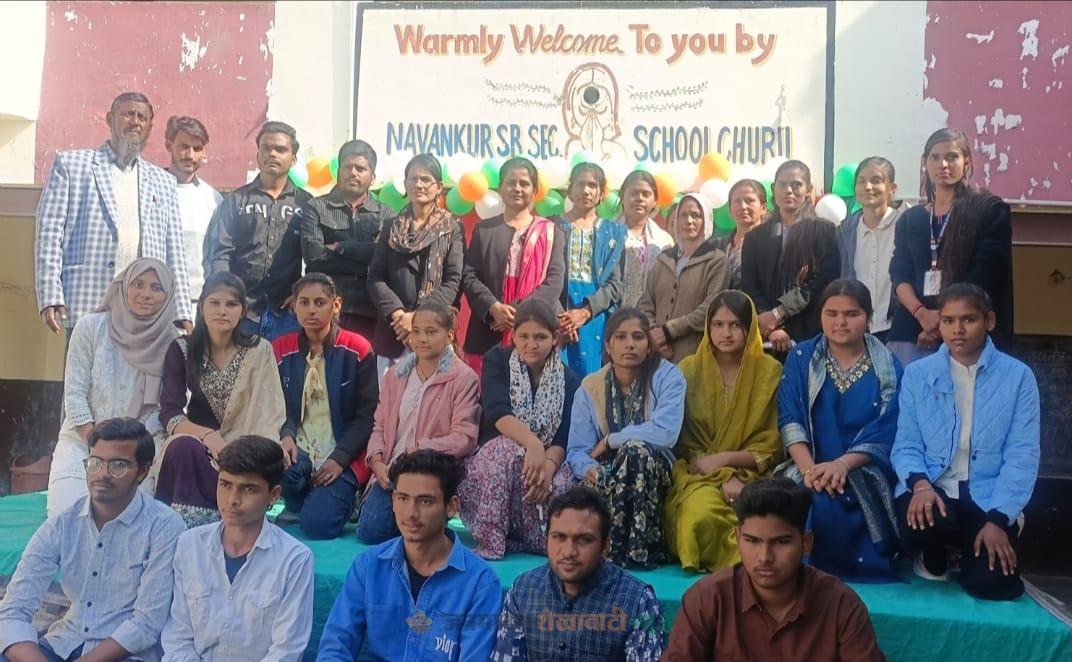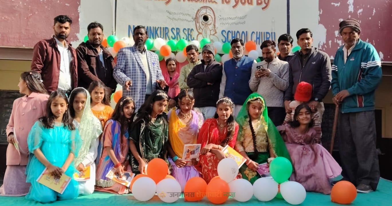 चूरू : जिला मुख्यालय पर अगुना मोहल्ला वार्ड नंबर 47 स्थित नवांकुर सीनियर शिशु अकादमी विद्यालय में गणतंत्र दिवस तथा 12वीं के बच्चों का विदाई समारोह का आयोजन किया गया जिसमें बच्चों ने बढ़-चढ़कर हिस्सा लिया । जहां छात्रों ने डांस किया वहीं पर छात्राओं ने सांस्कृतिक कार्यक्रम किया। कार्यक्रम के अतिथिगण मजहर खान, अनवर खान, मुबारक ख़ान, बाबू खान वकील, तालीम खान, इरफान खान, पूरणमल, शरीफ खान, रईस खान हसन अली खान जिन्होंने अपना अमूल्य समय देकर कार्यक्रम की शोभा बढ़ाई तथा विद्यालय के निदेशक रमजान खान ने अतिथियों का आभार व्यक्त किया ।