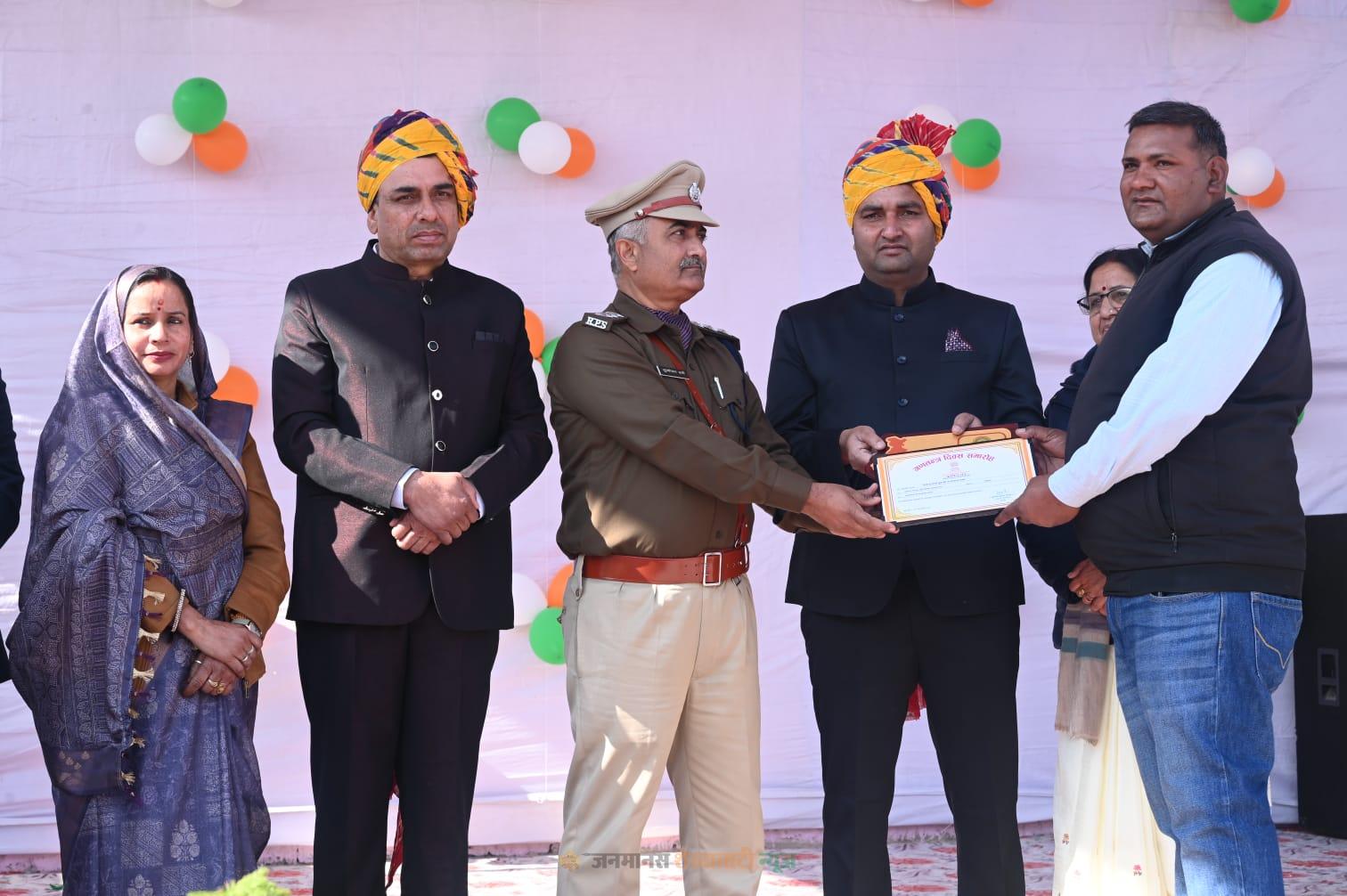 निष्पक्ष और निर्भीक पत्रकारिता के लिए पत्रकार विजेन्द्र शर्मा उपखंड स्तरीय गणतंत्र दिवस समारोह में सम्मानित