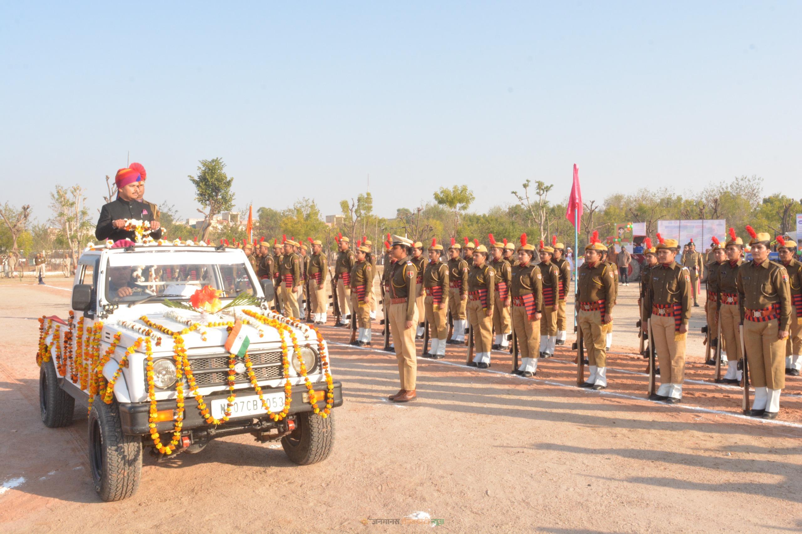 इस अवसर पर जिला कलक्टर सुराणा ने संविधान निर्माता डॉ भीमराव अंबेडकर, राष्ट्रपिता महात्मा गांधी, पंडित जवाहर लाल नेहरू, नेताजी सुभाष चंद्र बोस, सरदार वल्लभ भाई पटेल, शहीद भगतसिंह, सुखदेव, अशफाक उल्ला खां सहित तमाम महान स्वतंत्रता सेनानियों और संविधान निर्माताओं को श्रद्धाजंलि देते हुए कहा कि भारत की जनता को संविधान के अंगीकरण के बाद असल आजादी मिली। भारत की जनता के पास उनका स्वयं का संविधान होने से जनकल्याणकारी नीतियां बनीं और राष्ट्र उन्नति पथ पर आगे बढ़ा। उन्होंने कहा कि चूरू की ऐतिहासिक धरती शौर्य, सेवा और संस्कृति की मिसाल है। देश की आजादी से भी बहुत पहले 26 जनवरी, 1930 को यहां के क्रांतिकारियों ने धर्मस्तूप पर तिरंगा फहराकर उत्कट देशप्रेम और अदम्य साहस का परिचय दिया। मरूस्थल की कठोर परिस्थितियों के बावजूद चूरू के बहादुर सैनिक, कर्मठ किसान और मेहनती नागरिकों ने परिश्रम, आत्मनिर्भरता और राष्ट्रभक्ति की अद्भुत मिसाल कायम की है।