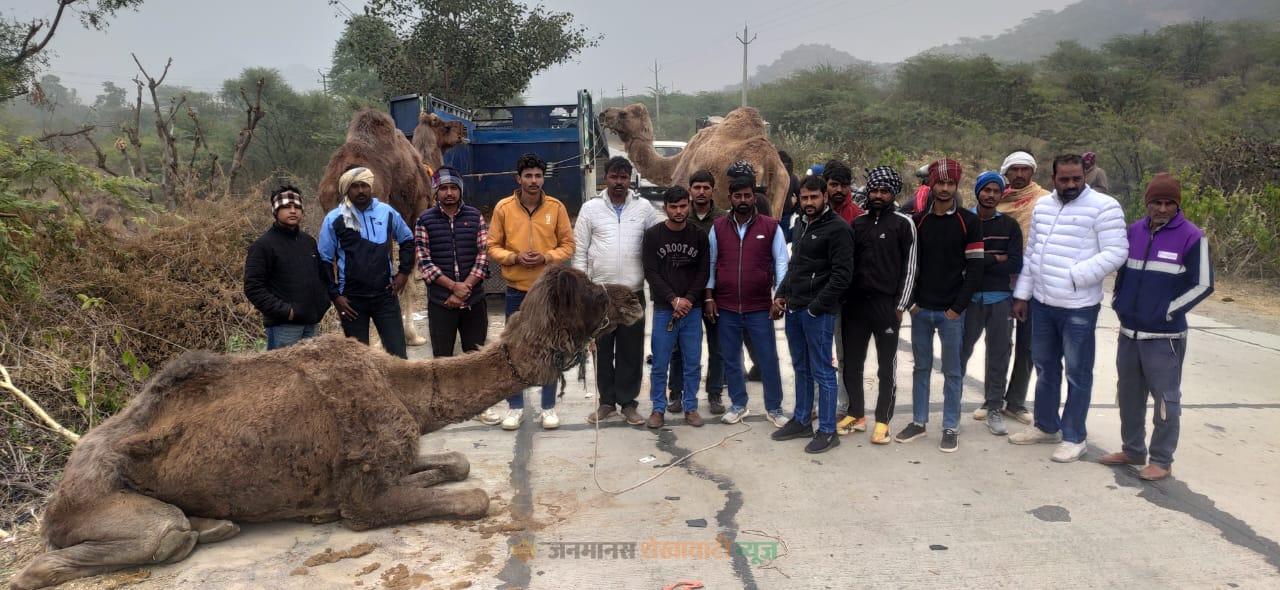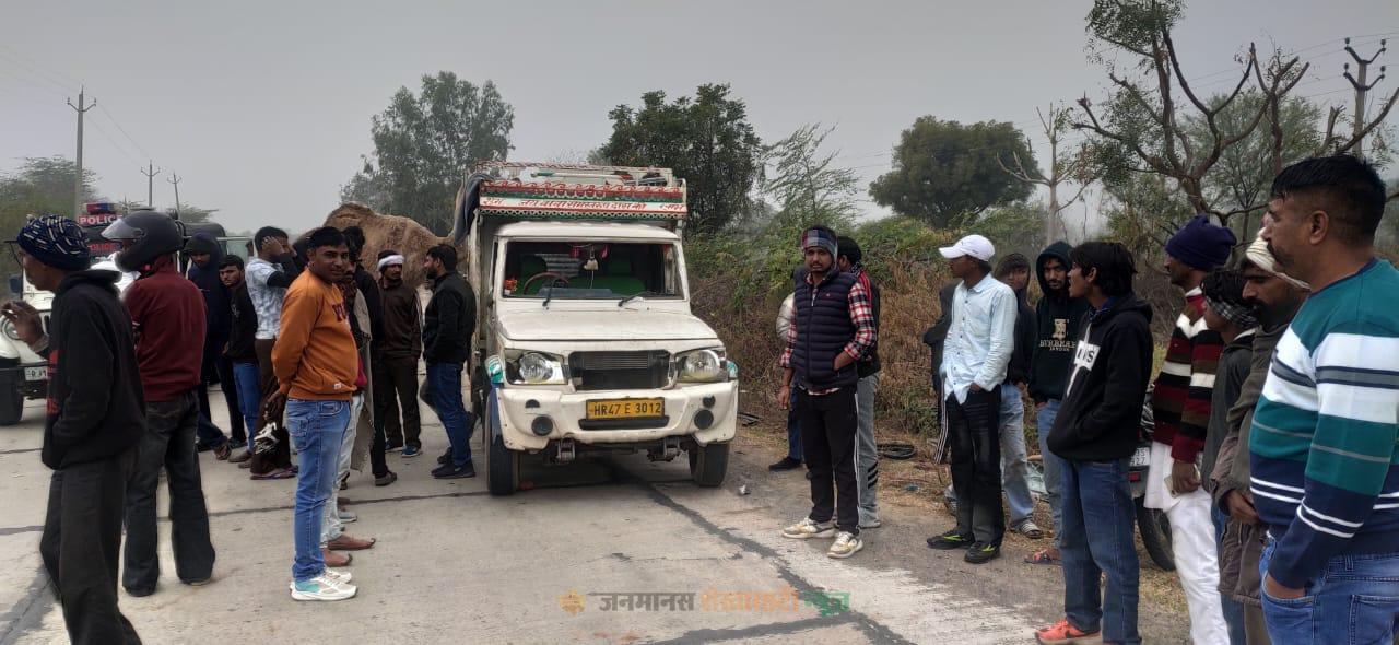 खेतड़ी में ऊंट तस्करी का मामला: खरखड़ा में गौ रक्षा दल ने पीछा कर पकड़ी पिकअप, तीन ऊंट बरामद, एक का पैर टूटा