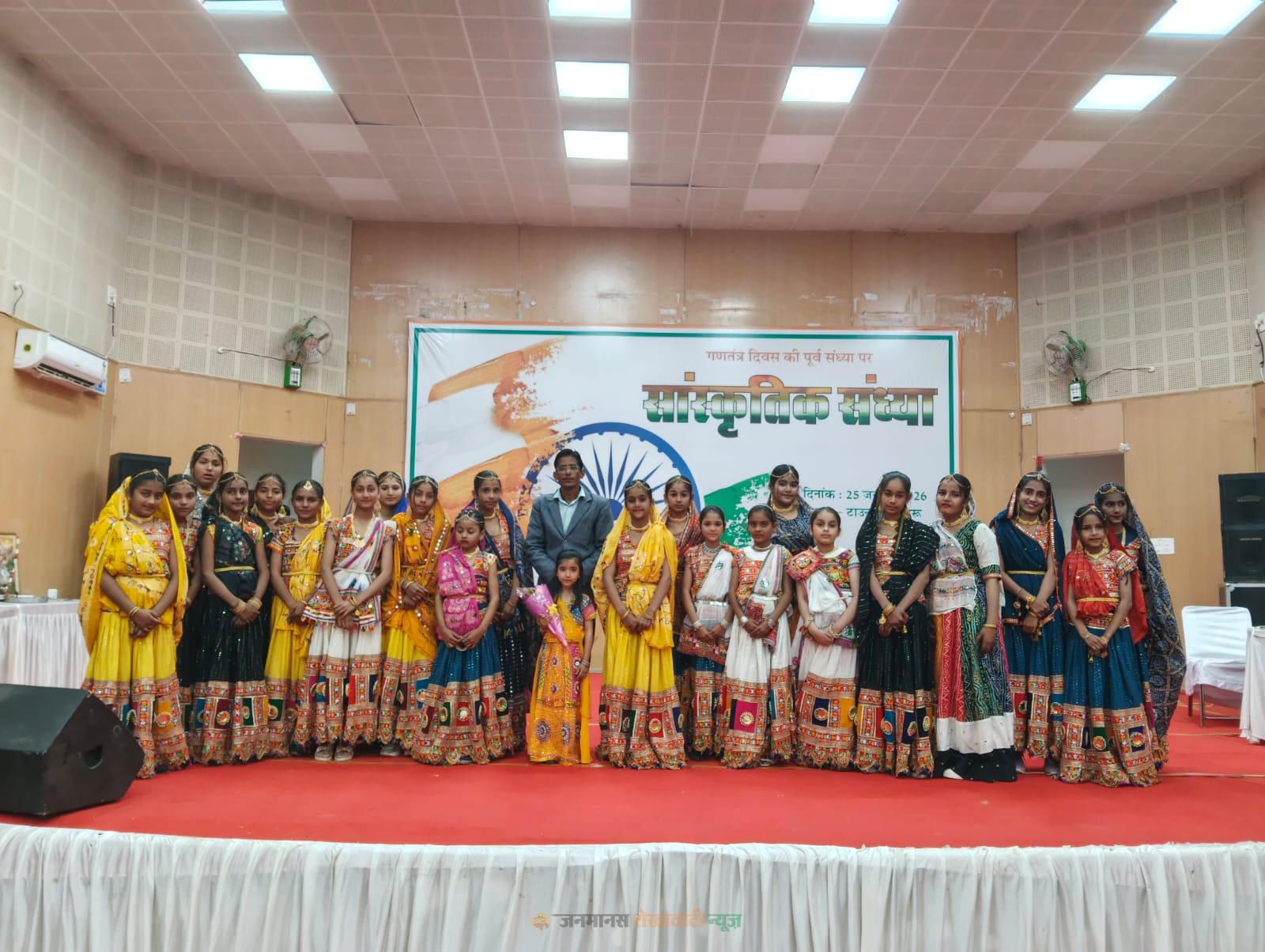 चूरू : जिला मुख्यालय पर स्थित टाउन हॉल में गणतंत्र दिवस की पूर्व संध्या पर सांस्कृतिक कार्यक्रम का आयोजन हुआ l कार्यक्रम में चूरू जिले के सभी ब्लॉकों से आए हुए विद्यार्थियों ने सांस्कृतिक प्रस्तुतियां दी l कार्यक्रम में जिला कलेक्टर अभिषेक सुराना, विधायक हरलाल सहारण, सीईओ श्वेता कोचर, वासुदेव चावला, सीडीओ संतोष महर्षि, चूरू नगर परिषद आयुक्त अभिलाषा सिंह, डीईओ प्रारंभिक किशन लाल गहनोलिया, मुकुल भाटी व अन्य अतिथि गण उपस्थित थे l