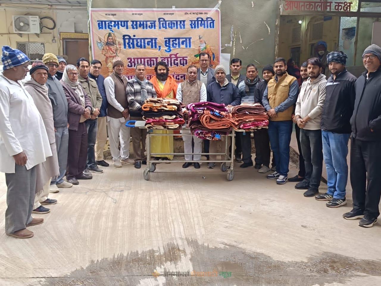 ब्राह्मण समाज विकास समिति ने सीएचसी सिंघाना में किया कंबल वितरण