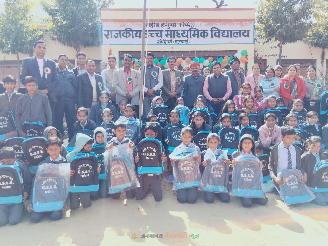 ध्वजारोहण कार्यक्रम के पश्चात शहीद परिवार की ओर से कैप्टन रविन्द्र अजाडीवाल एवं डॉ. कपिल अजाडीवाल द्वारा शहीद हनुमान सिंह राजकीय उच्च माध्यमिक विद्यालय के विद्यार्थियों को 120 स्कूल बैग वितरित किए गए। इस अवसर पर कैप्टन रविन्द्र अजाडीवाल ने बताया कि विद्यार्थियों को शैक्षिक सामग्री उपलब्ध कराने की प्रेरणा उन्हें देवकरण शिवरायण एवं कल्याण सिंह शेखावत से मिली।